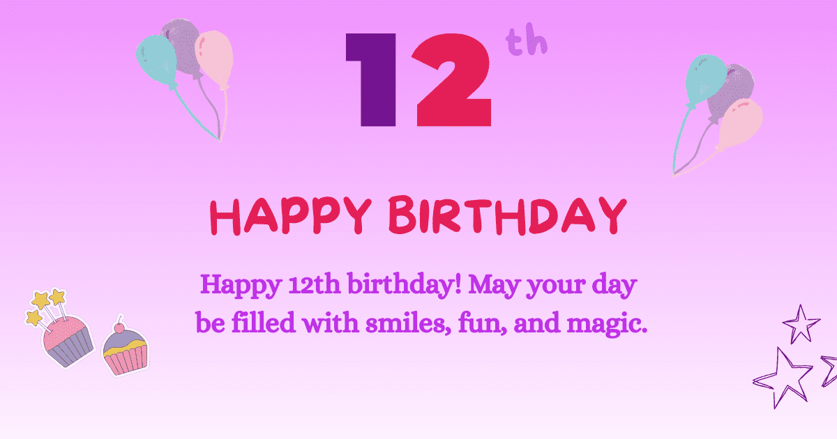 - Happy 12th birthday! May your day be filled with smiles, fun, and magic.