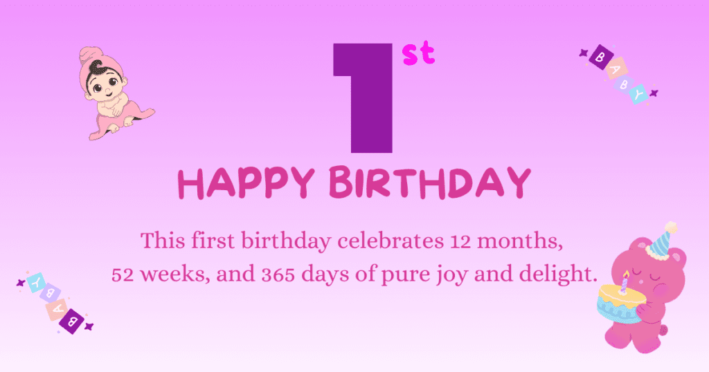 - This first birthday celebrates 12 months, 52 weeks, and 365 days of pure joy and delight.