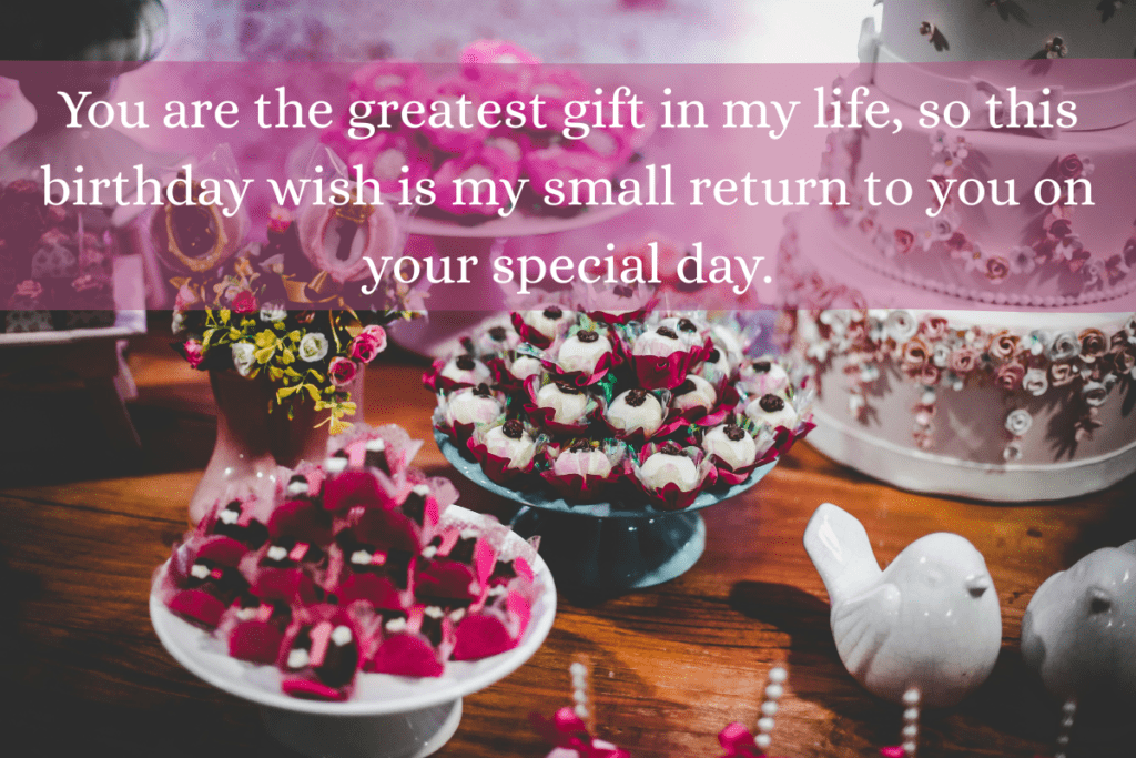 - You are the greatest gift in my life, so this birthday wish is my small return to you on your special day.