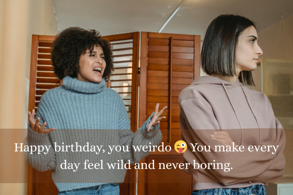 • Happy birthday, you weirdo 😜 You make every day feel wild and never boring.