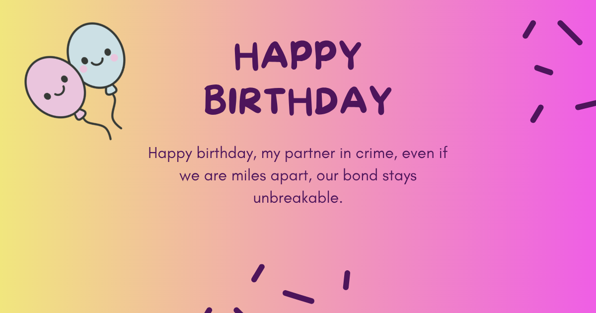 • Happy birthday, my partner in crime, even if we are miles apart, our bond stays unbreakable.
