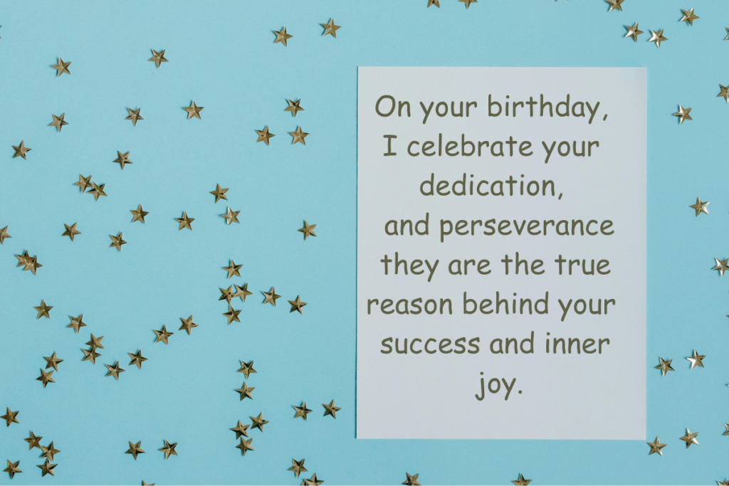 - On your birthday, I celebrate your dedication, hard work, and perseverance—they are the true reason behind your success and inner joy.