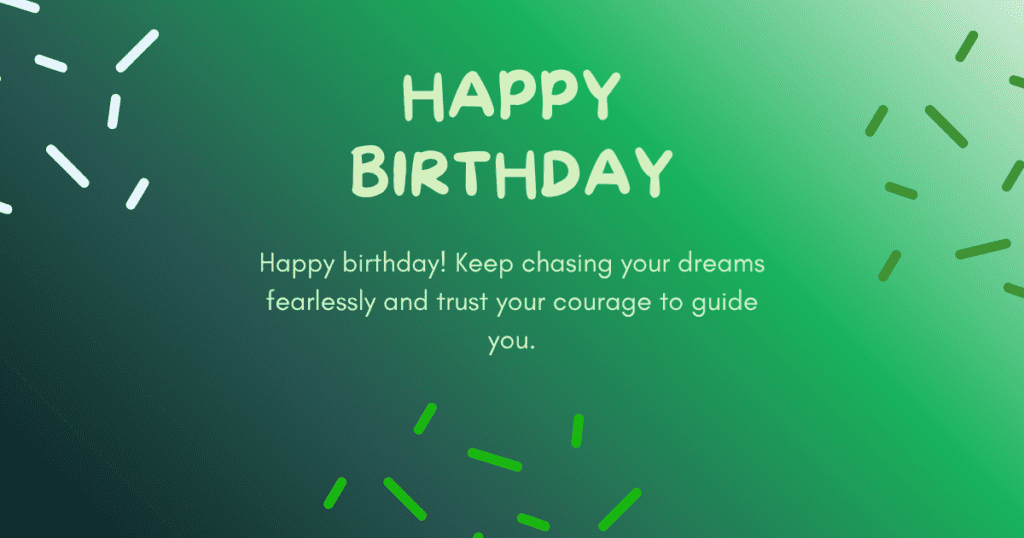 - Happy birthday! Keep chasing your dreams fearlessly and trust your courage to guide you.