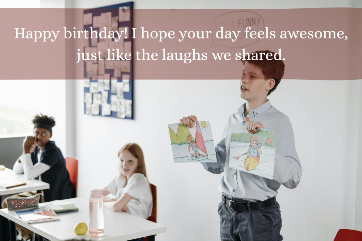 • Happy birthday! I hope your day feels awesome, just like the laughs we shared.