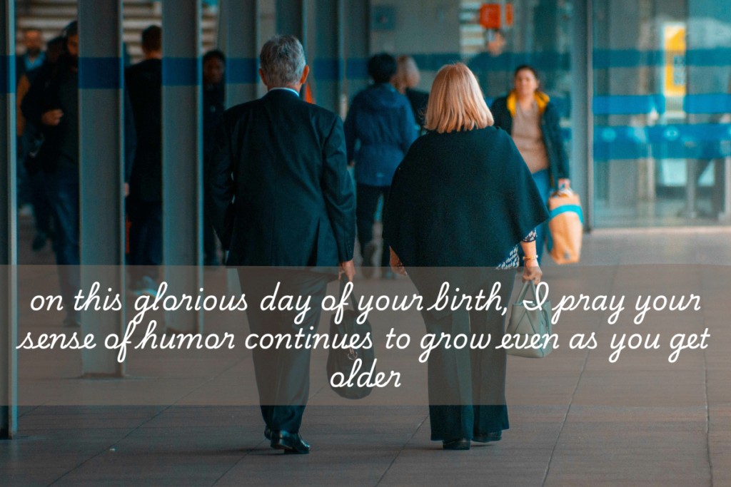 - Oh divine prankster, grant him the ability to gracefully handle over the hill jokes, gray hair comments, and still laugh.