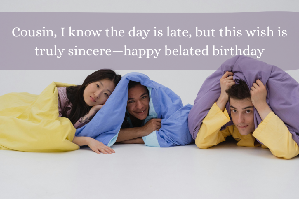 - Cousin, I know the day is late, but this wish is truly sincere—happy belated birthday.